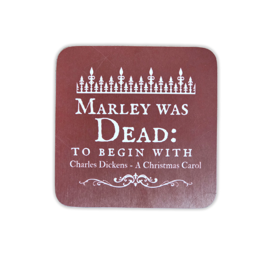This beautiful cork coaster, inspired by the railings of 48 Doughty Street, depict the famous beginning of 'A Christmas Carol,' published in 1843.